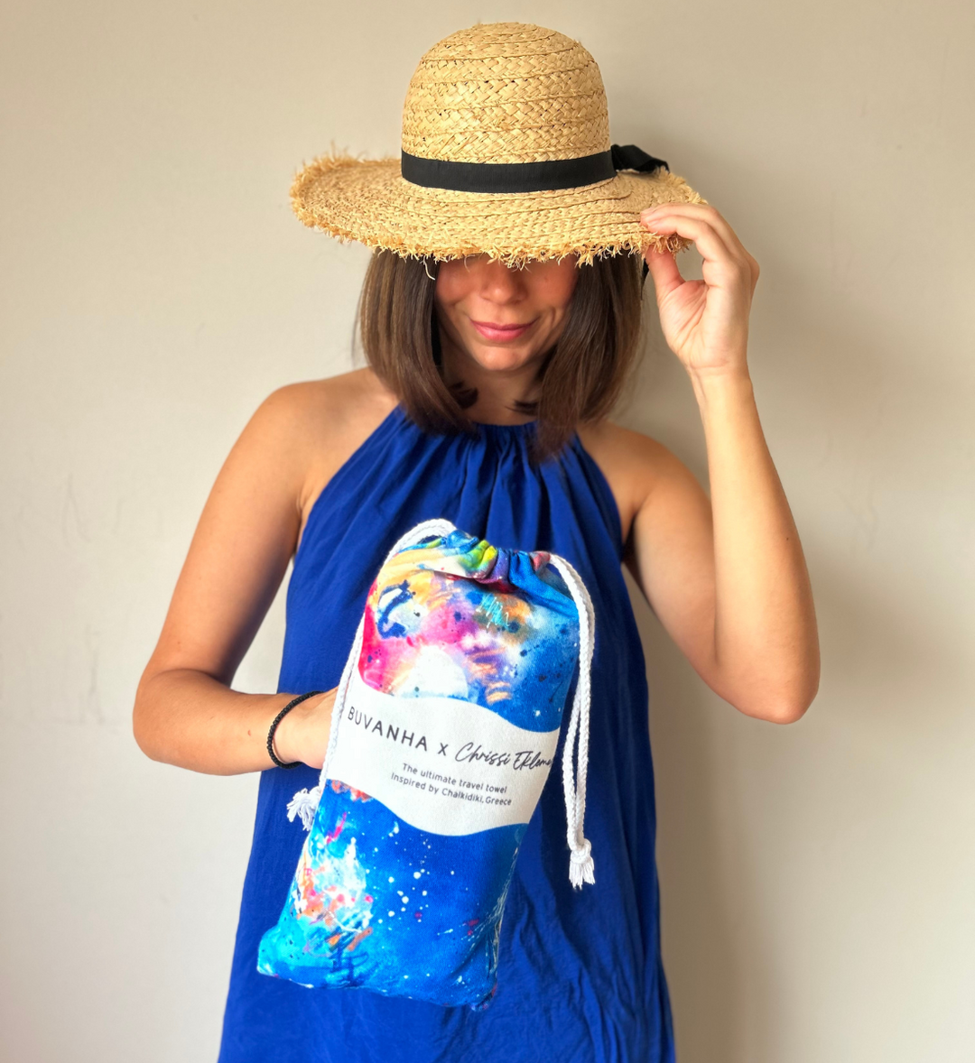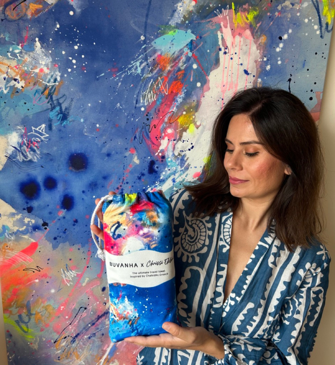 She is the third in the Buvanha X Artists series, in which we collaborate with seven artists worldwide to create a one-off edition of unique travel towels designed by them.